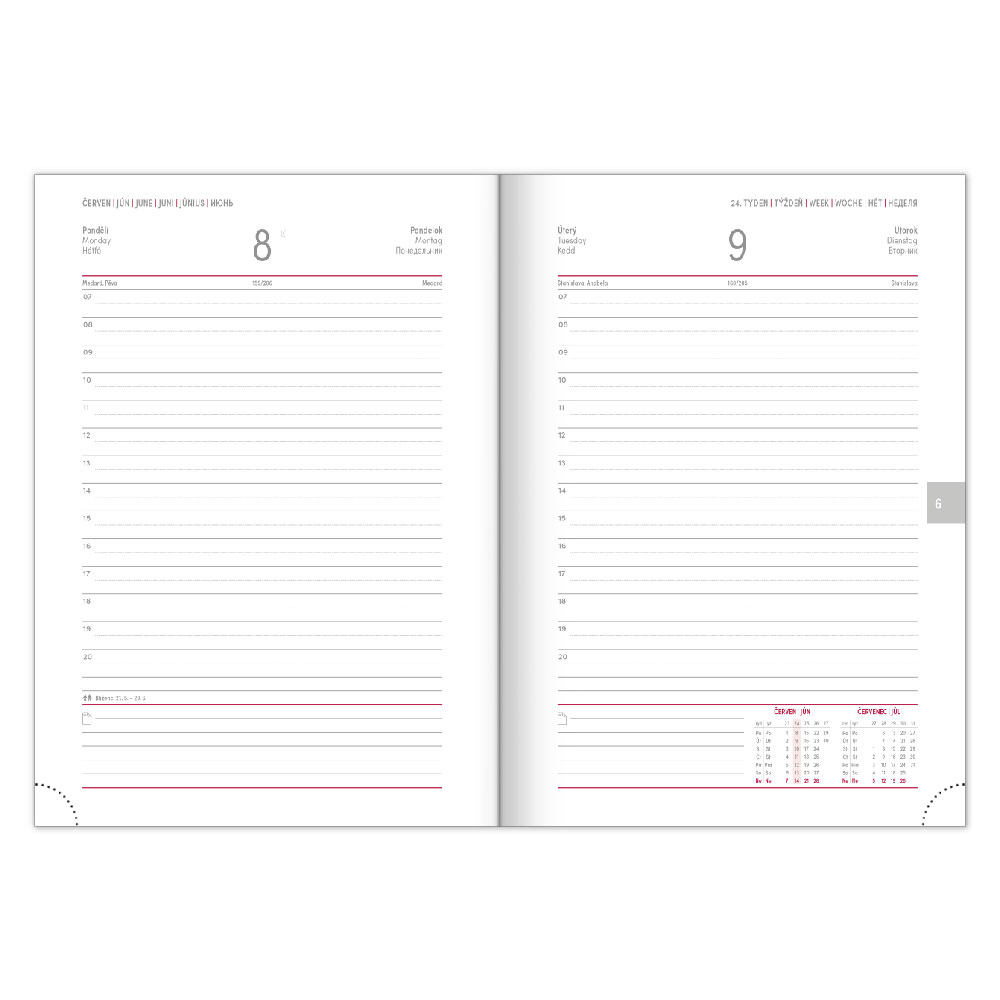 Kalendarz: dzienny w 6 językach (CZ, SK, EN, DE, HU, RU)