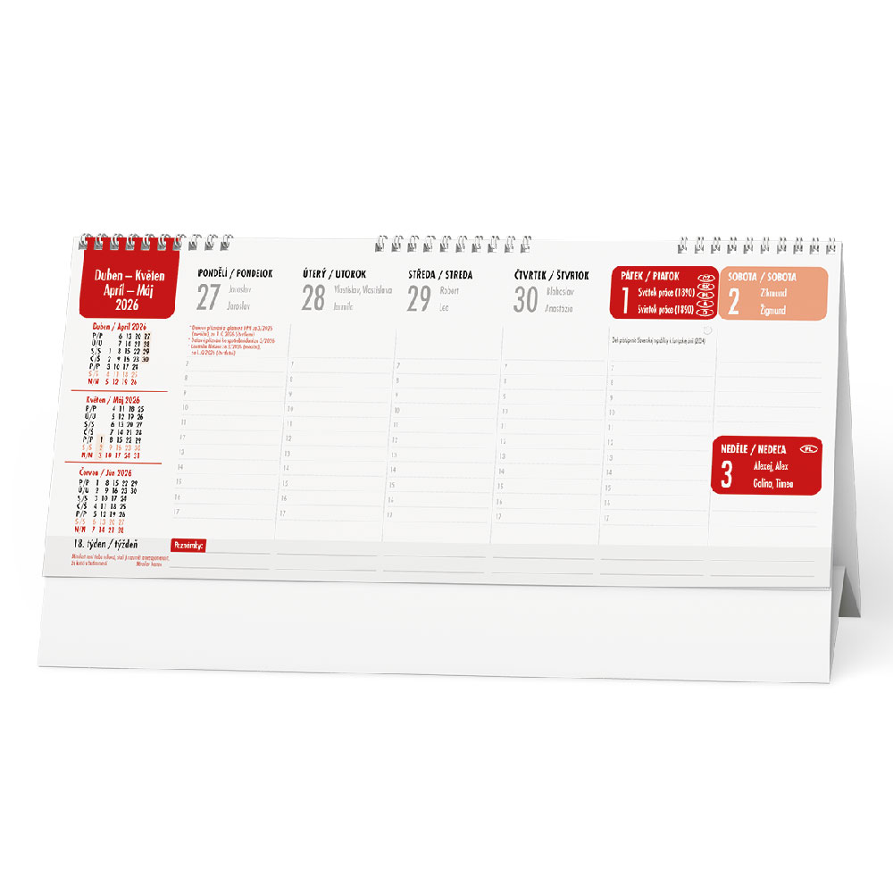 Kalendarz: tygodniowy kalendarz imienny w języku czeskim i słowackim